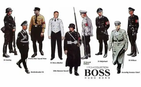 Не только в ведении войны, но и в военной форме нацисты были самоуверенными – кожаные сапоги, фетровые шляпы, фуражки с козырьками и шинели, цвет хаки, черный цвет и серый цвет стали атрибутами моды фашистов. Офицеры войск «СС», а именно отдела «Панцирь», вселяли страх одним своим внешним видом – черными фуражками, кожаными плащами, которые позже позаимствовали американские рокеры. Форма ботинок от Doc Martens напоминает ботинки офицеров «СС». Посмотрев на неформальные объединения, включая, рокеров, можно увидеть признаки формы нацистов. Американский романист Курт Во́ннегут однажды назвал нацистский стиль – «умеренно театральным». Основатель фирмы ADIDAS, Адольф Дасслер (Ади), был нацистом. Он занимался выпуском обуви для солдат Вермахта во время войны, а сегодня в его обуви ходят спортсмены всего мира, а компания стала международной. Брат Адольфа, Рудольф, основал компанию Puma. Хуго Босс тоже был нацистом с 1934 года и поставлял униформу солдатам «СС», «СА», «Гитлер юнгер», НСКК.
