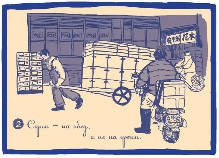 «Потому что это фастфуд. Раньше не было принято садиться на стул, чтобы съесть суши. Это началось только в пятидесятых годах ХХ века, во время Олимпийских игр в Токио. Прежде все ели суши стоя у прилавков киосков, назывались они ятай. Теперь такой уличной еды нет: ужесточились санитарные нормы».