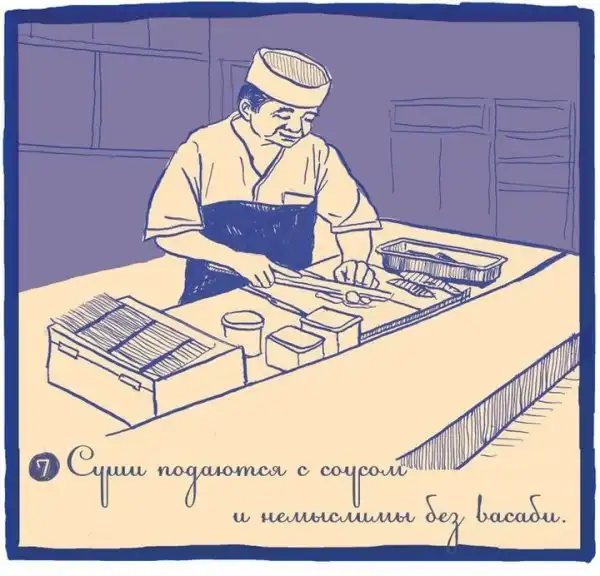 «Суши — хрупкое блюдо. Если есть их палочками, рис может раскрошиться, и суши потеряют форму. Надо есть их руками — тогда вы почувствуете блюдо. К тому же так быстрее».