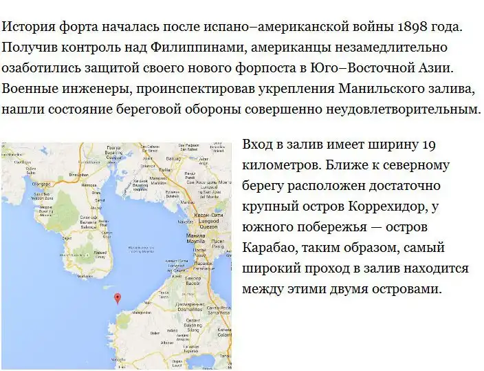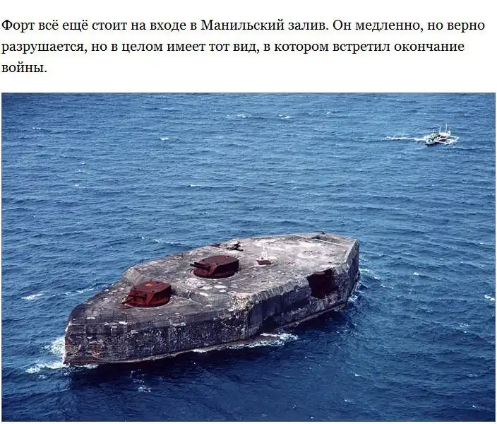 Далее мы познакомим вас с американским фортом Драм по прозвищу «непотопляемый корабль», который был построен на острове Эль Фрейл для охраны входа в Манильский залив.
