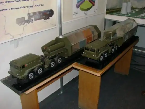 Параллельно разработке гусеничной ПАЭС в белорусском посёлке Сосны велась разработка колёсной атомной станции. Разработка получила название «Памир» и рассматривалась исключительно как военный проект, хотя в технической документации оговаривалась, что «Памир» может использоваться и в гражданских целях, в районах стихийных бедствий. Основное же номинальное предназначение «Памира» — электроснабжения радаров ПВО в условиях, когда штатные системы питания будут уничтожены ракетным нападением. Установка «Памир» размещалась на четырёх колёсных тягачах МАЗ-537: на первых двух были реакторный и турбогенераторный блоки, на третьем и четвёртом – система управления и оборудованные жилые помещения для персонала. Весила вся конструкция более 60 тонн. В 1985 году машины успешно прошли тестовые испытания. Но спустя шесть месяцев произошла катастрофа на АЭС в Чернобыле. После этого многие перспективные атомные проекты были свёрнуты под давлением общественности. И самоходные атомные станции, к сожалению, не стали исключением.