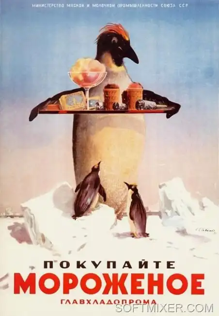 На родине самое вкусное мороженое в мире не успевало залеживаться — разбирали моментально. Продавали на развес или фасованное по 50 или 100 г на уличных лотках, в киосках или в кафе. В 50-е годы на улицах висели завлекающие плакаты, на которых красовались пингвины с эскимо — символом мороженого СССР.