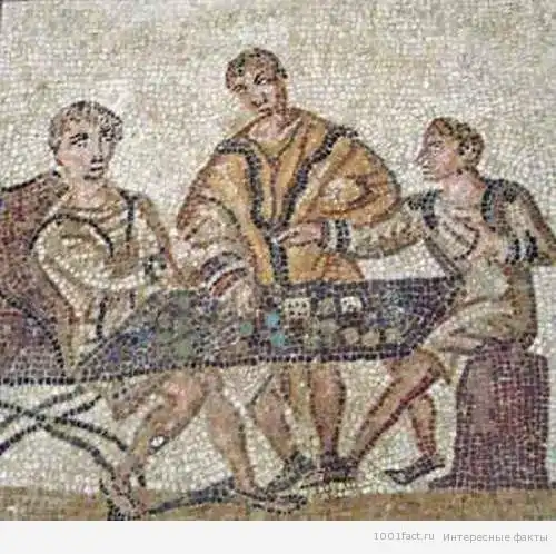В Древнем Риме играли в кости, бросая сразу три кубика, на грани которых были нанесены не точки, а римские цифры. Лучший (три шестерки) и худший (три единицы) броски имели свои собственные названия: Venus (Венера) и Canis (собака) соответственно. Доска для бросков клалась игроками на колени. Все это красочно отражают дошедшие до нас фрески и мозаики из погубленных Везувием Помпей.