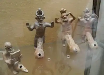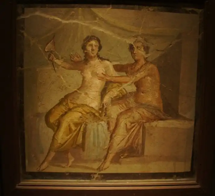 Город Помпеи исчез с древних карт в 79 году после рождества Христова, после извержения вулкана Везувий (вместе с ним тогда исчезли Геркуланум и Стабия, да и Неаполю сильно досталось). Когда археологи начали раскапывать город, то смятение пало в души последователей "древнеримской цивилизации", то бишь Римской католической церкви. Папа римский вообще приказал замуровать назад если не все, что отрыли, то хоть найденные фрески, поскольку они "приводят в смятение тело и душу". Разумеется, Папу не послушали, да и не легко было выполнить приказ понтифика - римляне были людьми активными и наваяли столько артефактов "сексуального характера", что замуровать их археологам было не под силу, вот и пришлось оставить все как есть. И теперь каждый турист знает, что скромностью помпейцы не отличались - благодаря их жизнелюбию художественно оформленных фаллосов и других культовых частей тела набралось на целую выставку "Эротическое искусство Помпеи", часть которых любезно здесь представлена в виде фотографий артефактов - фресок, статуэток, предметов быта.