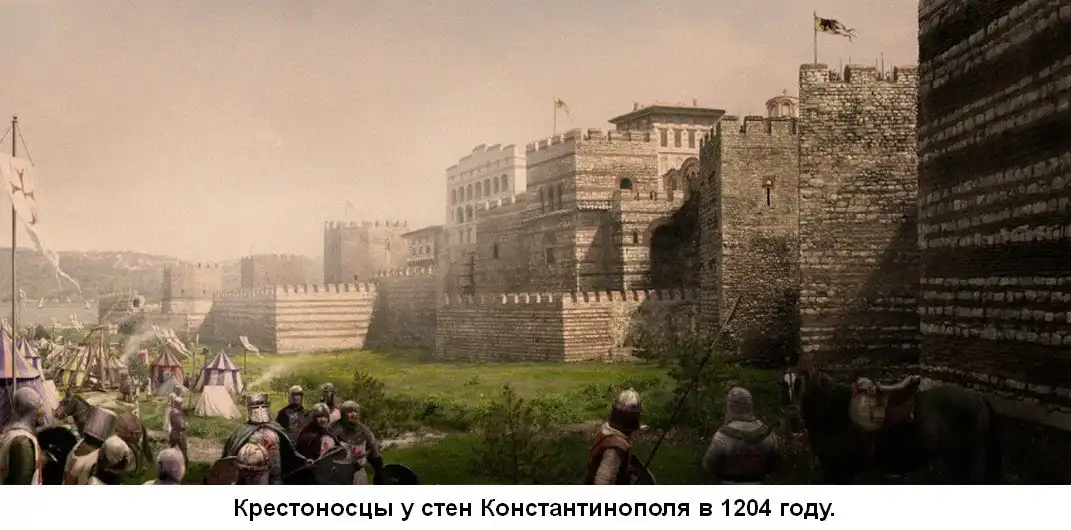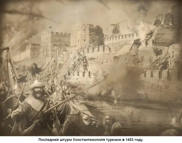 Восточная Римская империя, ставшая Византией христианской, с 1204 года была в начале ограблена крестоносцами из Западных стран, а после в 1453 году сдана туркам.