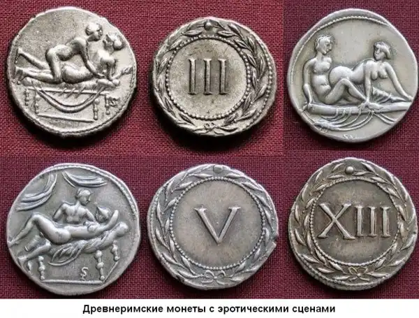 С тех пор как в Рим стали в большом количестве прибывать иностранцы, не владеющие местным языком, а также по причине того, что многие девушки легкого поведения были уведены в рабство из других мест - монеты помогали быстро и эффективно прийти к соглашению. Одна из сторон этих монет показывала, что покупатель желает, а другая сторона указывала на стоимость желаемой услуги. Эти монеты обычно чеканились из меди или бронзы и были меньше, чем американский четвертак. Некоторые из монет изображали гомосексуальные сцены.