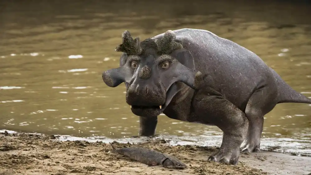 Эласмотерии — это род носорогов, обитавших в Евразии с плиоцена до плейстоцена. Они отличались крупными размерами (длина до 6 метров, высота до 2,5 метра, вес до 5 тонн). Главная их особенность — крупный куполообразный вырост на лбу. Некоторые учёные предполагают, что на нём находился длинный (более 1,5 м) и толстый рог. В то же время, кости купола очень тонкие, а сам купол имеет губчатую структуру. В целом эласмотерии жили не только на территории России. Они были распространены от Западной Европы до Восточной Сибири. Близкородственные, но более примитивные роды известны из миоцена-плиоцена Китая, Ирана и Испании.