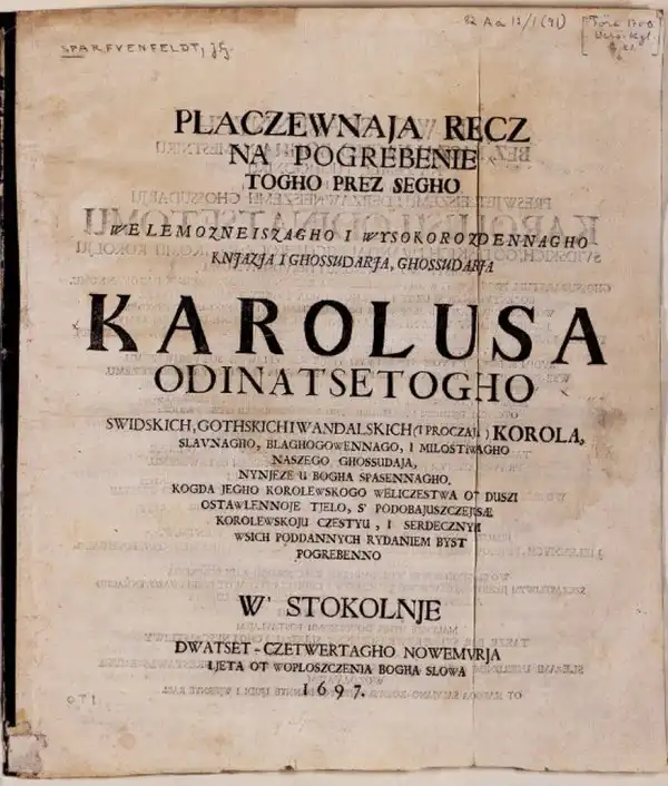 Плачевная речь по случаю кончины Шведского короля Карла XI. 1697г.
