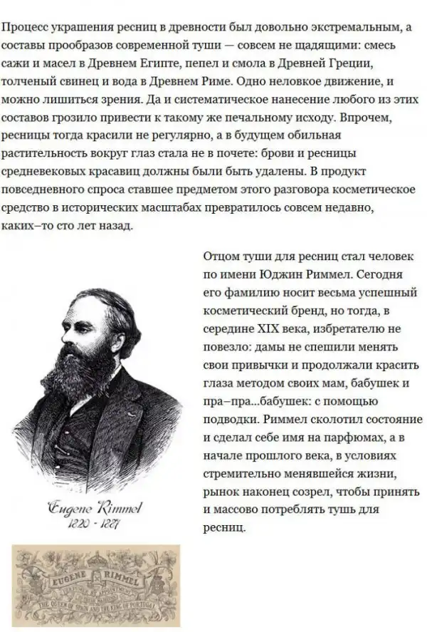 Еще в древности женщины старались сделать свой взгляд более ярким и выразительным, а помогали им в этом различные подручные средства, которые со временем превратились в то, что сейчас мы называем тушью. Об истории создания этого популярного косметического средства вам поведает данный пост.