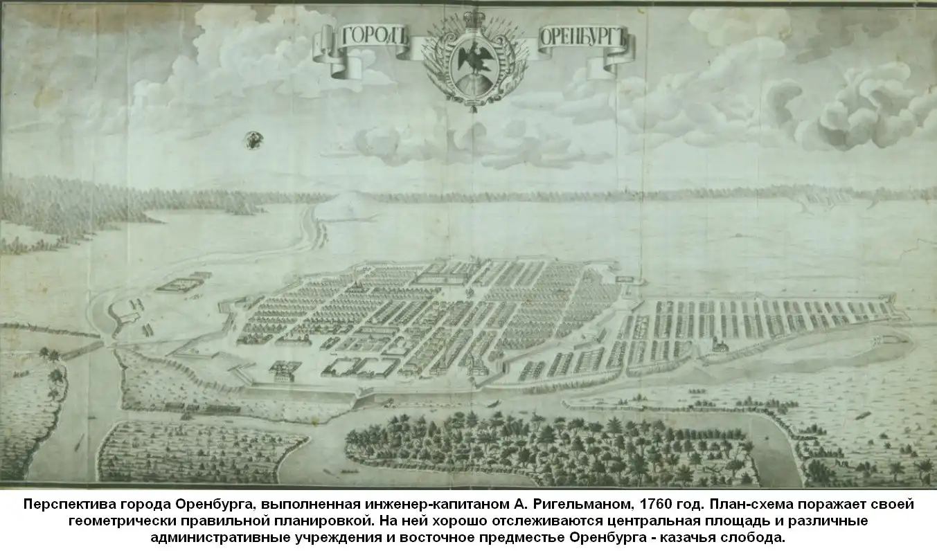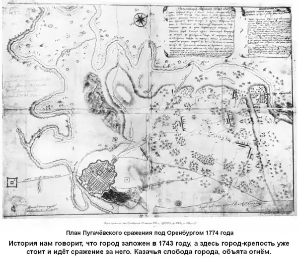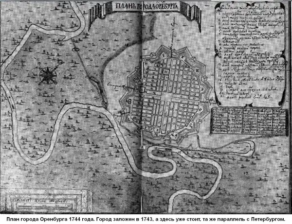 Вот ниже, к примеру, Оренбургская крепость. Она связана с событиями Е. Пугачёва и правду об истинной истории крепости уже не найти. Единственно, что мы можем узнать, что эта крепость была настоящим городом и по ней можно судить, какие крепости были на территории Сибири. Вспомните выше описанные сгоревшие города Енисейск, Иркутск, Красноярск, они были огромны, а Оренбург тоже горел не раз.