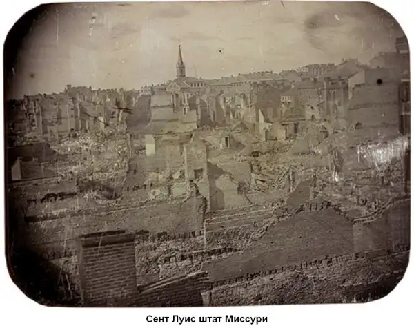 "Огонь расплавил строительный камень, который ранее считался огнеупорным. Железо, стекло, гранит, спеклись в гротескный конгломерат, как если бы прошли через доменные печи. Во дворе одного из крупных сельскохозяйственных заводов были сложены несколько сотен тонн чугуна. Расстояние от металла до любого здания двести метров. К югу - река, 150 футов шириной. Но жар был таков, что эта груда чугуна расплавилась и превратилась в единую массу". 8 октября 1871 года, в половине десятого вечера, одновременно, в сотнях миль друг от друга, в штатах Висконсин, Мичиган и Иллинойс вспыхнули беспрецедентные по мощи пожары. Пострадали 24 города, целиком уничтожено 16 городов.