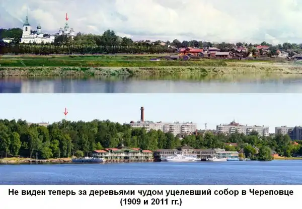Вот к примеру зафиксированные события столетней давности и сравнение с сегодняшним днём. Деревья на запечатлённых снимках сто лет назад были ещё молодыми и низкорослыми, а в некоторых местах и вовсе не было.