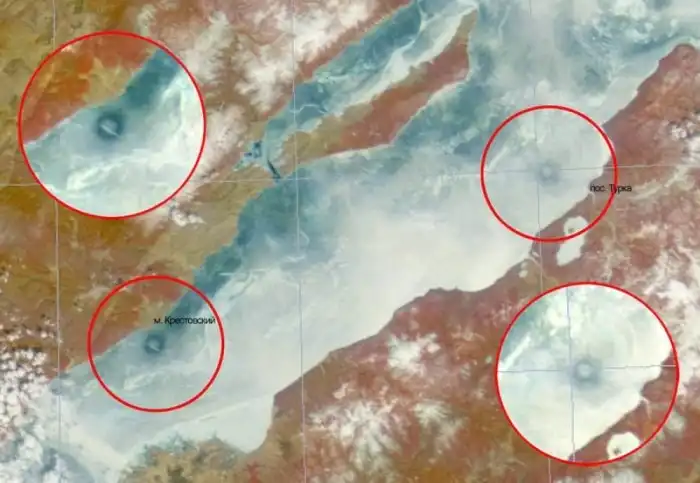 На космических снимках Байкала на весеннем льду иногда можно увидеть темные кольца диаметром 5-7 километров. Впервые такое кольцо было замечено на космоснимке, сделанном в апреле 1999 года. Кольцо располагалось напротив мыса Крестовского (недалеко от поселка Бугульдейка). Предположительно образование кругов связано с выбросами природного горючего газа (метана) из многокилометровой осадочной толщи дна Байкала. Летом в таких местах из глубины на поверхность поднимаются пузыри, а зимой образуются «пропарины» диаметром от полуметра до сотен метров, где лед очень тонкий или вообще отсутствует.