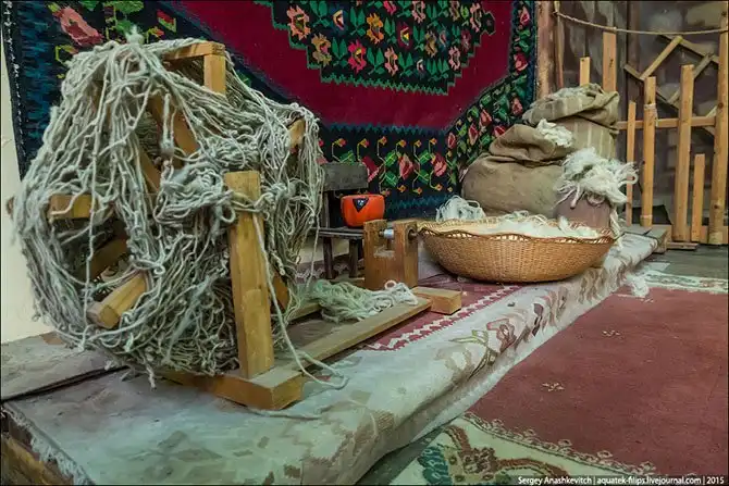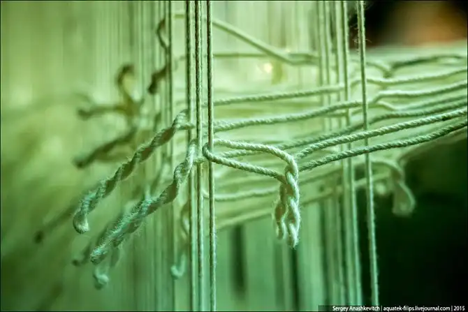 Перед каждой из них статина с натянутыми продольными нитями основы, в них вплетаются цветные пряди, с их помощью и создается узор. Над некоторыми (как правило, крупными коврами) трудится сразу несколько ткачих.