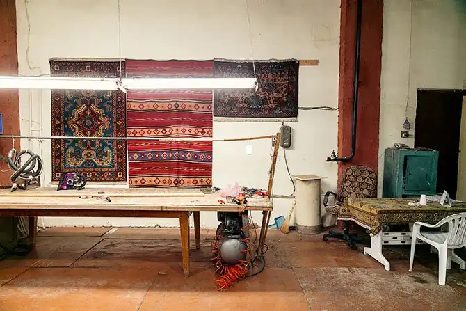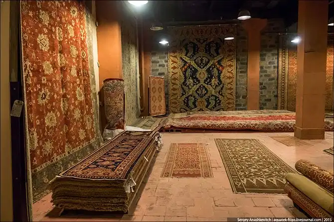 В Ереване на ковровой фабрике Мегерян можно побывать на производстве, в музее ковров и даже … пообедать прямо на ковровом складе.