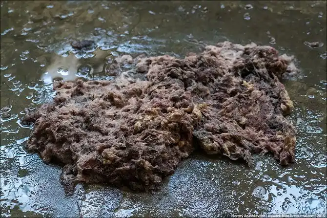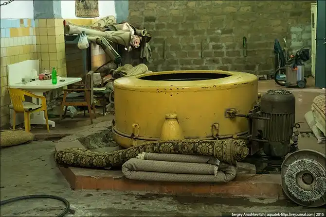 Вот что остается после стирки. Теперь ковер остается просушить и отправить на склад готовой продукции