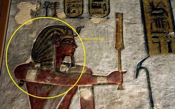 Головной убор на голове фараонов назывался немеш, он скрывал волосы правителя, на которые не положено было никому смотреть.