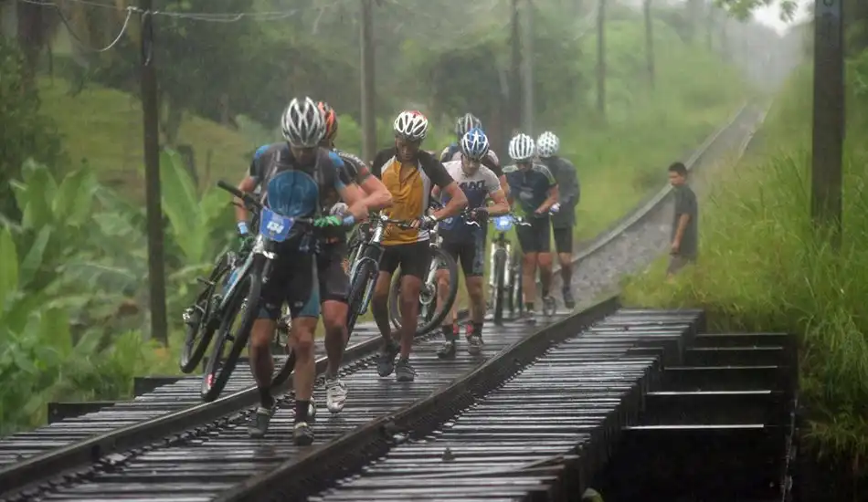 Из джунглей Коста-Рики к горным вершинам и активным вулканам пролегает трасса «Путь Конкистадоров». Велосипедисты вынуждены побывать и по колено в грязи, и в песке (с ядовитыми лягушками), преодолевая путь почти в 250 километров.