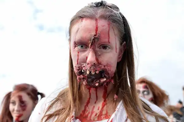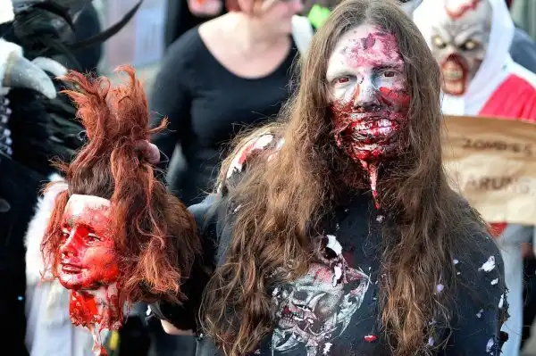 Вам никогда не хотелось посмотреть на настоящих зомби, которых показывают в фильмах ужасов и описывают в книгах? Если да то вам было просто необходимо посетить зомби-парад, регулярно проводимый в немецком городе Дюссельдорфе, который состоялся в минувшие выходные. В эти дни вся нечисть вылезла из своих могил и разгуливала по улицам города, громко завывая и пугая прохожих своим внешним видом. Но конечно главная их цель это мозгииии!