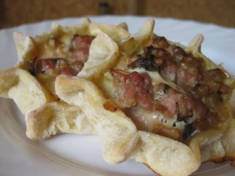 Это старинное, и одно из самых известных блюд удмуртской кухни, открытая ватрушка диаметром от 4 до 12 см с мясной, яичной, грибной или овощной начинкой, обычно заливаемой сверху яйцом, либо смесью яйца и молока. Готовится, как правило, на открытом огне из пресного теста на ржаной муке. Подаются в горячем виде.