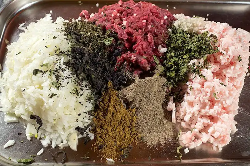 Фарш перемешать, но не вымешивать, как на люля-кебаб. Потому что...