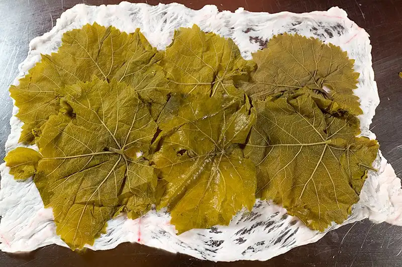 Потому что на стол надо выложить кусок сальника, а поверх него несколько виноградных листьев.