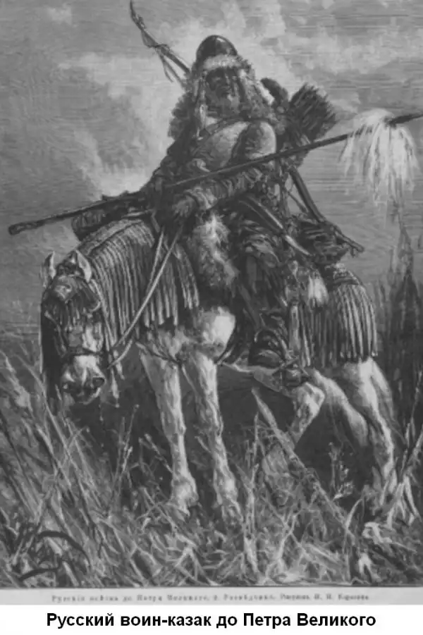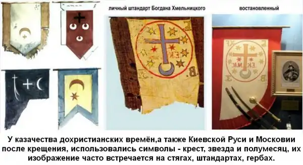 Истоки древнеславянской военной лексики относятся к эпохе славяно-тюркского единства. Этот необычный пока термин доказуем: источники дают для этого основания. И прежде всего - словарь. Целый ряд обозначений наиболее общих понятий военного дела получен от древнетюркских языков. Такие как - воин, боярин, полк, труд, (в значении война), охота, облава, чугун, железо, булат, алебарда, топор, молот, сулица, рать, хоругвь, сабля, кметь, колчан, тьма (10 тысячное войско), ура, айда и т.д. Они уже не выделяются из словаря, эти обкатанные в веках невидимые тюркизмы. Лингвисты замечают лишь позднейшие, явно "неродные" включения: саадак, орда, бунчук, караул, есаул, ертаул, атаман, кош, курень, богатырь, бирюч, жалав (знамя), снузник, колымага, алпаут, сурначь и т. п. А общие символы казаков, Ордынской Руси и Византии, говорят нам о том, что было что-то такое в историческом прошлом, что объединяло их всех в борьбе с врагом, который скрыт от нас сейчас лживыми наслоениями. Имя ему "Западный мир" или римско-католический мир с папским управлением, с его агентами-миссионерами, крестоносцами, иезуитами, но об этом поговорим позже.