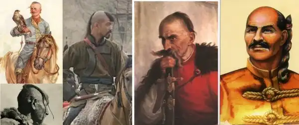 Интересно, что племена скифских народов, изображенных на найденных артефактах, что на территории Сибири, на Русской равнине, показаны с бородами и длинными волосами на голове. Русские князья, правители, воины также бородаты и волосаты. Так откуда же появился оселедец, бритая голова с чубом и вислые усы?