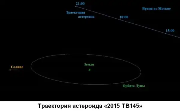 От Земли космическое тело пролетит довольно далеко, поэтому столкновение с Землёй не произойдёт. Однако астероид может "встретиться" с Луной, как считают британские учёные. Предварительные вычисления НАСА показывают, что "2015 ТВ145" приблизится к орбите нашего спутника на расстояние, сравнимое с расстоянием от Земли до Луны.