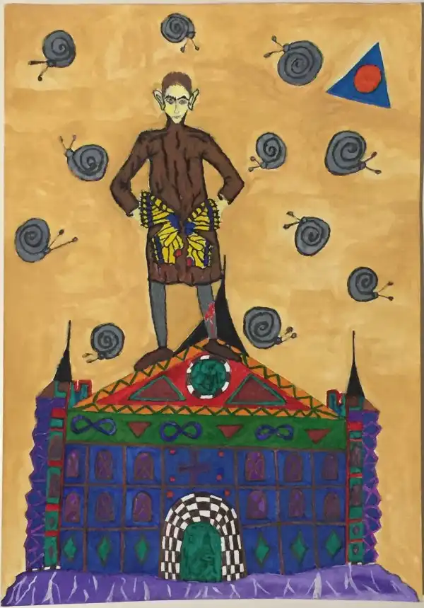 Один из пациентов показал мне свои рисунки и прокомментировал их: "Замок" Франца Кафки - моё любимое произведение.Я решил сделать несколько иллюстраций к любимой книги.