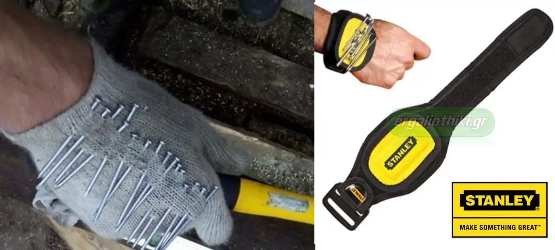 Чтобы не держать во рту грязные гвозди, проденьте их через рабочие перчатки.