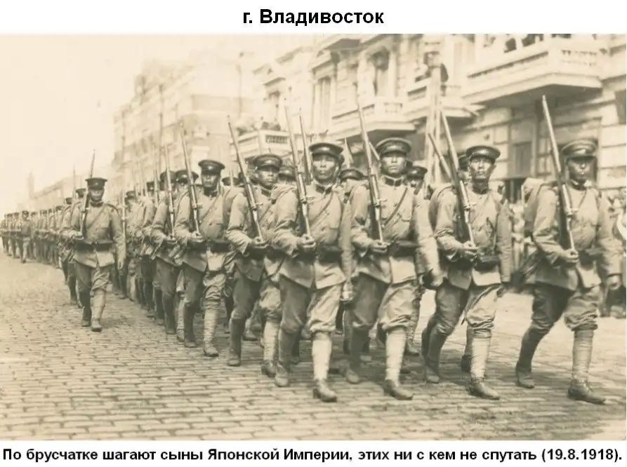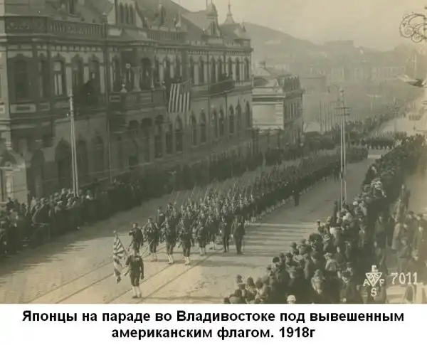 В то же время Япония направила в Сибирь крупные военные силы, намереваясь захватить русский Дальний Восток. Противоречия между США и Японией обострились. Англия и Франция, боясь укрепления США и претендуя на "русское наследство", стали поддерживать японские притязания на Приморье и Забайкалье. Стотысячная из двухсот, японская армия совместно с англо-американскими войсками заняла Приморье, Амурскую и Забайкальскую области. Организатором этой интервенции были США. Не имея большой военной силы для подчинения своему влиянию восточной территории России, Вильсон и его правительство решили стать на путь коалиции и взяли на себя финансирование антирусского похода держав. Главным партнёром США в этом походе была империалистическая Япония, несмотря на имевшиеся между ними противоречия. Великобритания тоже желала отхватить кусок пожирнее.