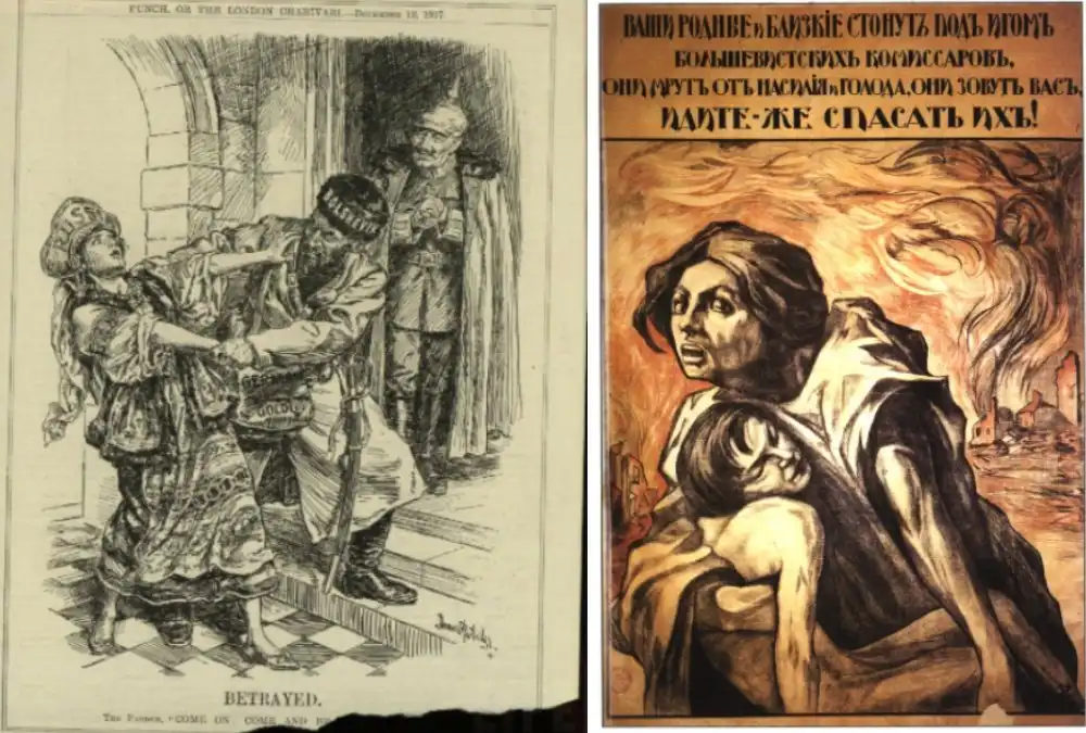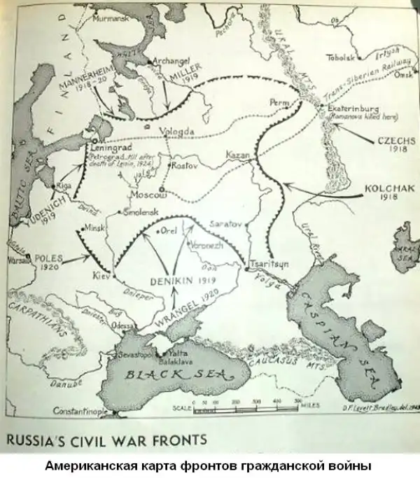 США привели к власти Троцкого (Россия) и Колчака (Сибирь), а чехословаки (белочехи), были ударной карательной армией в составе войск англо-американской коалиции и подчинялась лично американскому генералу Гревсу. На севере России на время интервенции был установлен оккупационный режим. На территории России и Сибири даже появились концентрационные лагеря. Они не оставляли своих намерений расширить сферу своего влияния и за счёт России разрешить свои старые противоречия с Японией и Англией. По планам вся Сибирь должна была отойти к США...