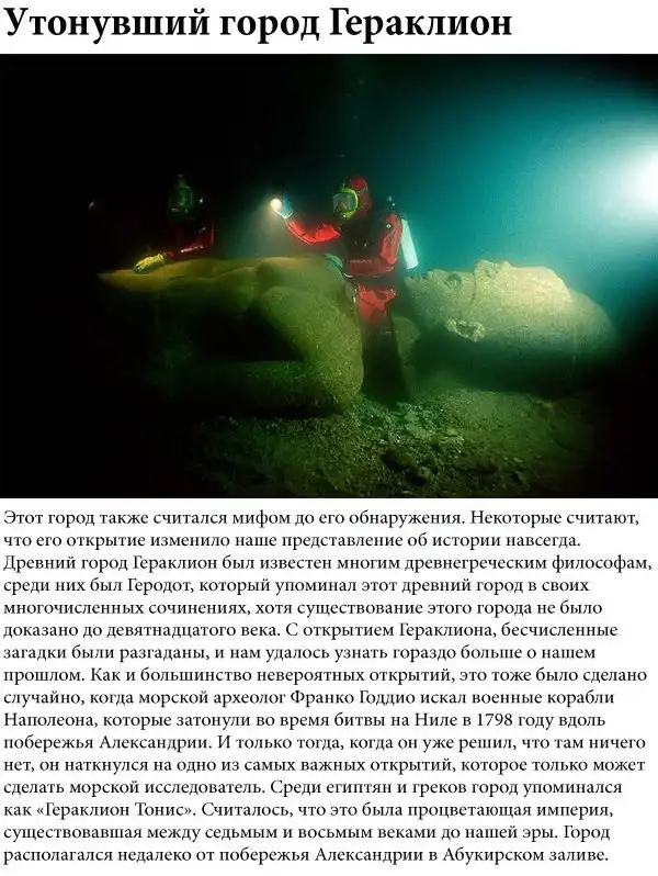 На дне океанов, морей и озер покоятся не только древние суда, отдельные исторические здания, но и целые города, позволяющие пролить свет на нашу историю.