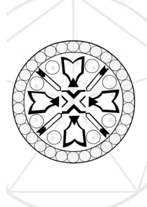 Управляется элементом духа воздуха. Барьер в виде крестов по контуру, как армия скрещенных мечей, а красивые стрелы и точки внутри больше похожи на щиты или охранные талисманы. Это символизирует нашу нужду во внутренней силе, стоять стойко с поднятой защитой. Мандала несет в себе дух орла. Он несет свое превосходное чувство видения, ясности и стремления. Он напоминает нам о том, что стоит обращать наши, порой, невозможные стремления в победные свершения, разбудив наших внутренних воинов. Созерцая мандалу, ваш дух подскажет вам поднять вашу смелость на новый уровень, взглянуть на проблемы под новым углом, сосредоточиться на стоящих целях и смело сделать все, что потребуется. Нужно найти внутреннюю храбрость, понять, что вы можете сделать гораздо больше для достижения цели и стать на свой собственный путь.