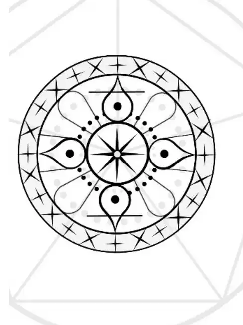 Управляется элементом земли. Обратите внимание на мощение в виде хоботов, что окружает коробку с несколькими линиями, объединенными в центре, символизирующие нацеленность. Эта мандала хранит дух акулы. Она несет ее примитивное познание про окружающую среду и ее сильную неостановимую нацеленность. Она напоминает нам верить в себя и не показывать слабые стороны, когда речь идет о ваших истоках и прошлом. Созерцая эту мандалу, ваш дух подскажет вам сменить цель. Пора убрать все лишние шумы и сосредоточиться на своих истинных намерениях. Что подсказывают вам ваши внутренности? Верьте им! Двигайтесь вперед без оглядки. Вы знаете наверняка, что правы.