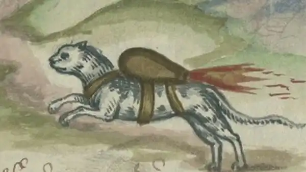 Затем он добавил раздел, в котором посоветовал осадным армиям найти кота. Любой кот, говорил он, будет приходить из города, который вы пытаетесь победить. Привяжите к нему бомбу. В теории, кот вернется в свой дом и затем сожжет весь город. Голуби тоже подойдут.