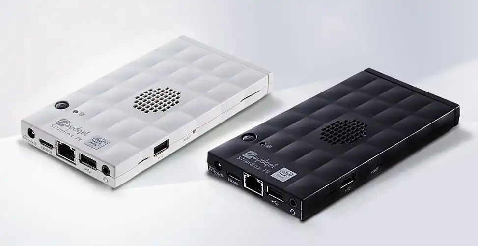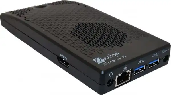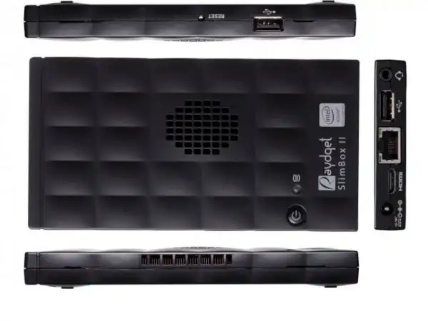 Raydget исполнен в двух вариантах: Slimbox и Powerbox. Первый вариант оснащается процессором Intel Core M-5Y10 с частотой 2 ГГц и встроенной графикой Intel HD Graphics 5300. Объем оперативной памяти составляет 4 ГБ, емкость SSD-накопителя — 64, 128 или 256 ГБ, в зависимости от конфигурации.