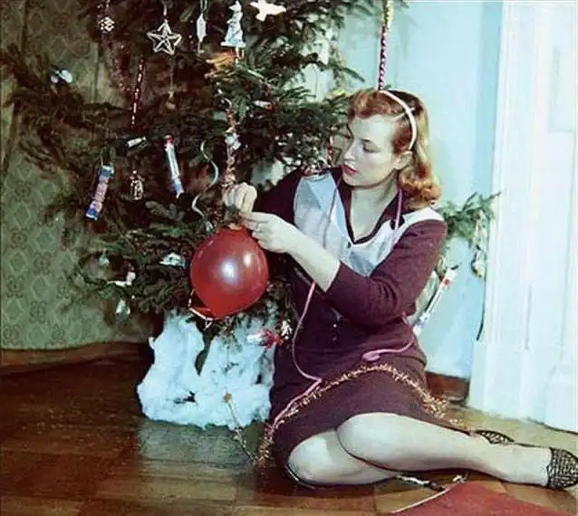 Только после войны начали по-настоящему складываться традиции празднования Нового года в СССР. Стали появляться елочные игрушки: вначале очень скромные — из бумаги, ваты и прочих материалов, позднее — красивые, яркие, сделанные стекла и похожие на украшения елок дореволюционного времени.
