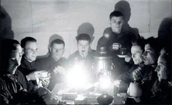 1942 год, группа разведчиков Западного фронта встречает Новый год. В самоваре, скорее всего, спирт.