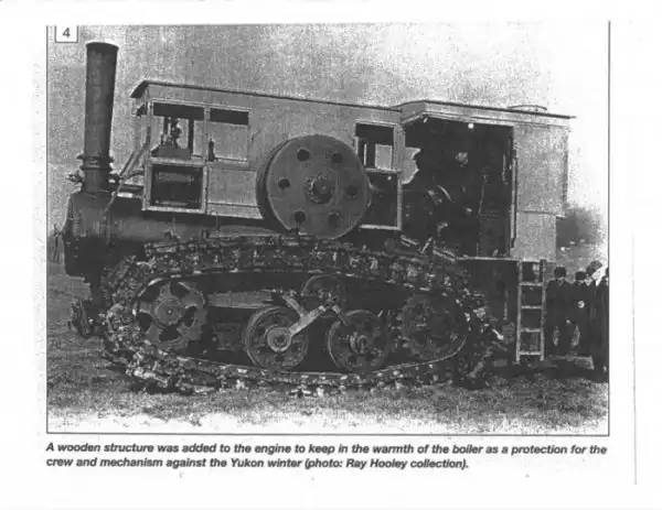 Изготовлен в Англии в 1910 году в единственном экземпляре. Предназначен для перетаскивания грузов на Аляске — там с дорогами было плохо, колесные тягачи не обладали необходимой проходимостью, а лошади и собаки возить большие грузы не могли.