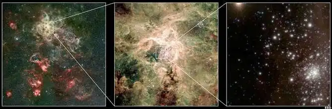 Но...UY Щита, конечно, большая звезда, но далеко не тяжеловес. Король тяжеловесов - это звезда R136a1, расположенная в Большом Магеллановом Облаке в 165 000 световых годах.