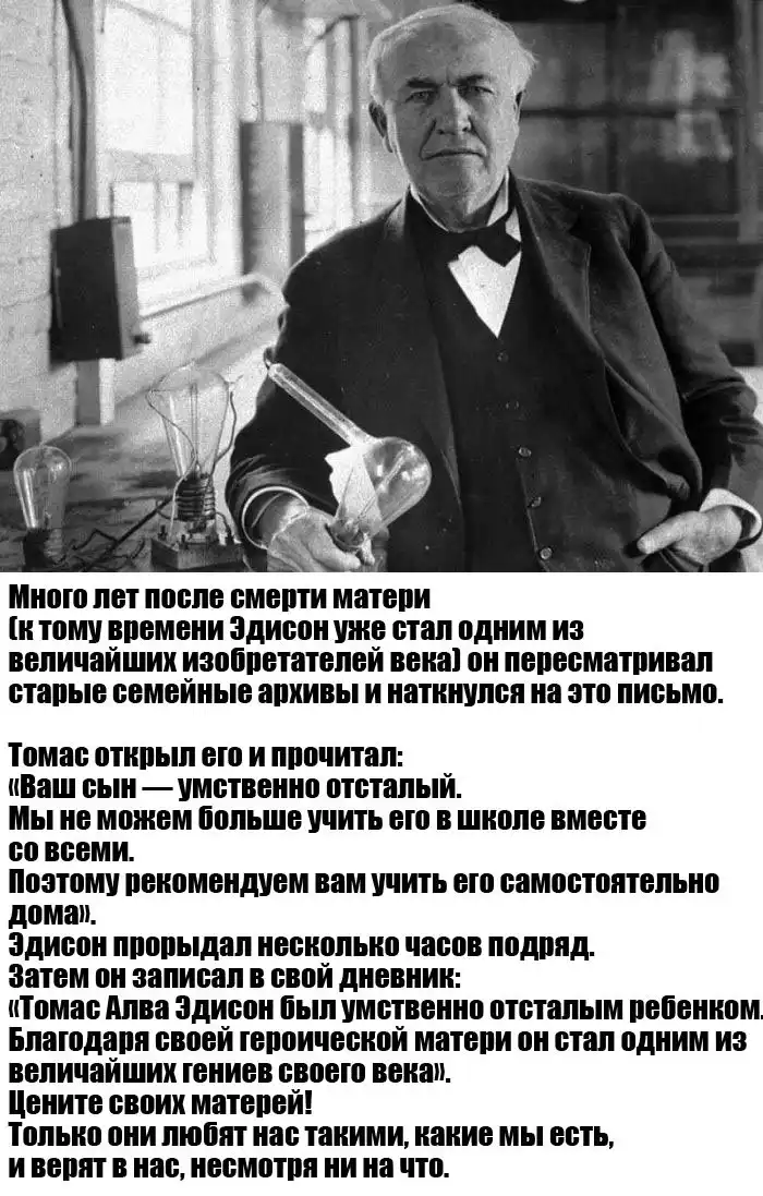Во время обучения в школе будущий изобретатель Томас Эдисон принес своей матери записку от школьной учительницы, которая заставила его мать рыдать. Содержание этой записки и связанная с ней история ждут вас далее.