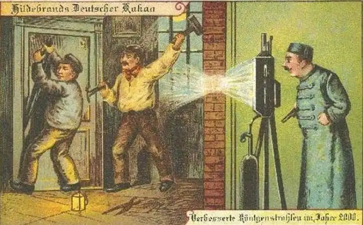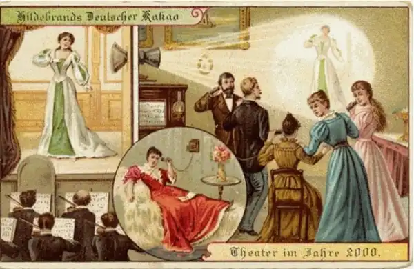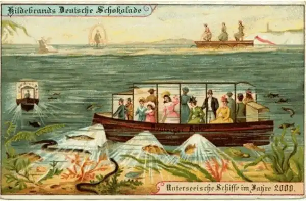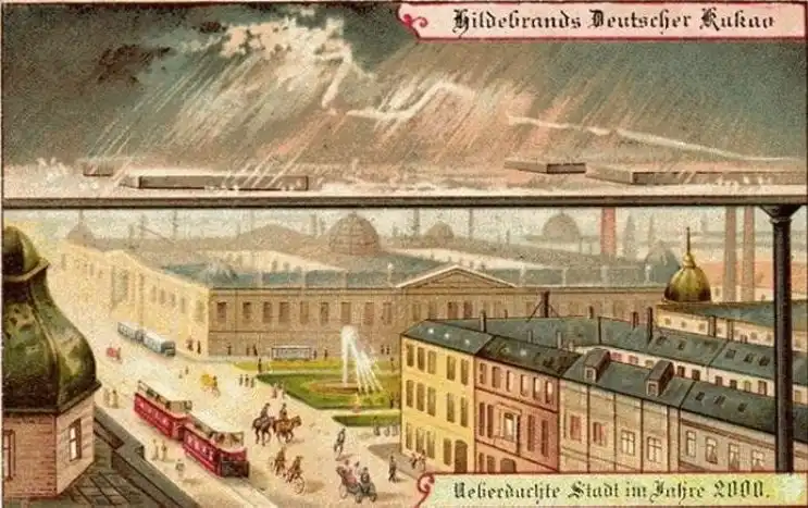 Свою версию жизни через 100 лет продемонстрировали и в Германии. В 1900-том году в коробках шоколадных конфет было выпущено дюжина карточек, посвященных 2000 году.
