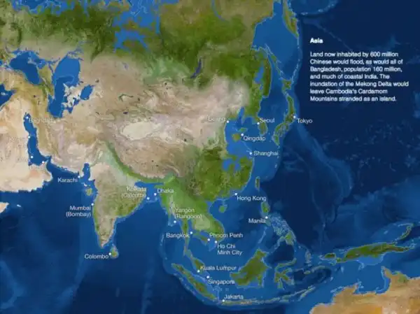 Самые густонаселенные и развитые провинции Китая - Шанхай, Сингапур и Пекин будут затоплены. Камбоджа просто станет группой островов.