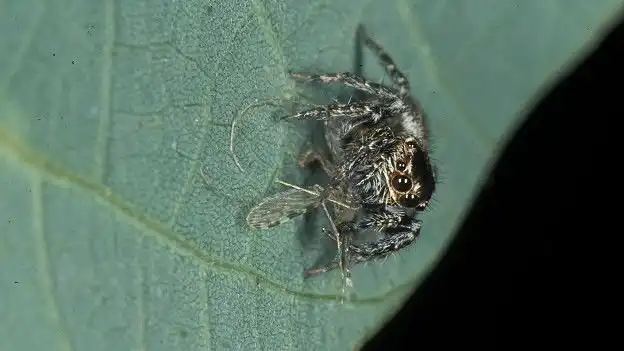 Паук-скакун Evarcha culicivora поедает комара Anopheles gambiae