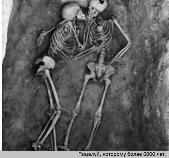 "Целующиеся" скелеты - парное захоронение, совсем не редкость, сам такое копал, возраст захоронения порядка 4000 - 4500 лет.