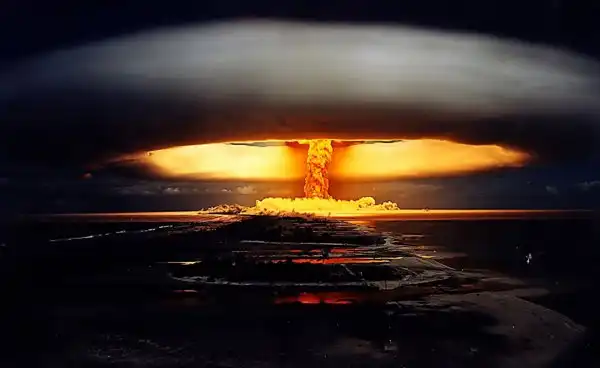 Термоядерный синтез — процесс, который происходит во время детонации водородной бомбы — самый мощный тип доступной человечеству энергии. В мирных целях его использовать мы еще не научились, зато приспособили к военным. Эта термоядерная реакция, подобная той, что можно наблюдать на звездах, высвобождает невероятный поток энергии. В атомной же энергия получается от деления атомного ядра, поэтому взрыв атомной бомбы намного слабее.