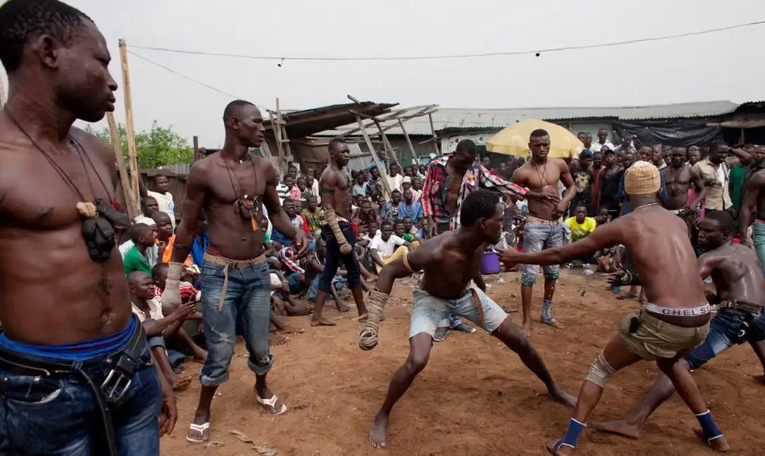 Дамбе сложно назвать спортивной дисциплиной. Это настоящее искусство, предназначенное для полного сокрушения противника. Его создатели, народ хуса, отправляли своих бойцов в соседние деревни, чтобы показать смелость и доблесть. Мастер дамбе обматывает одну руку несколькими слоями плотной ткани, закрепленной толстым шнуром — представьте, насколько сильны удары этой булавы! Ведущая нога бойца обмотана цепью.