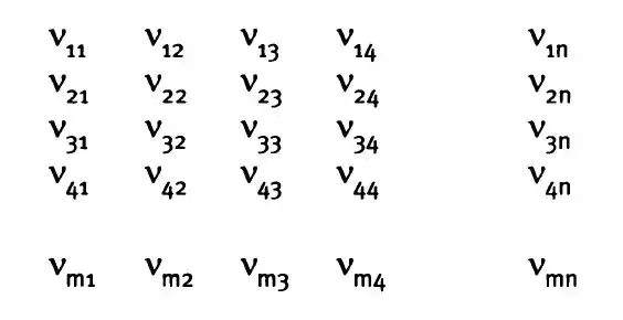 И вот, Гейзенберг посылает работу своему учителю Борну. Борна работа заинтересовала, и через некоторое время появилась уже их совместная работа, где система уравнений Гейзенберга была записана в форме матрицы. Почему в форме матрицы? По мнению ученых, матрица учитывала каждую из наблюдаемых величин, связанных с определенной парой энергетических уровней. Они были правы, потому что из матрицы можно было определить частоту любой спектральной линии в атоме - в зависимости от того, с какого уровня на какой переходит электрон, испуская при этом свет, частота которого и определяется частотой спектральной линии. Например, на рисунке ниже частота спектральной линии v32 определяет частоту света, испускаемого электроном при квантовом скачке с энергетического уровня 3 на энергетический уровень 2. А как интерпретировать частоты, находящиеся в диагонали матрицы (где m=n)? Все просто - эти частоты равны нулю, потому что нет никаких переходов, это один и тот же энергетический уровень. Вот так и удалось решить реальную проблему, стоящую в последнее время перед учеными - вывести спектр энергетических уровней атома водорода - с помощью матричной механики Гейзенберга!